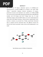 Raman and IR activity: Those vibrational modes with translational character will be IR active. In this case, the vibrational modes with Au and Bu symmetry have translational character, so will be IR active. Those vibrational modes with quadratic terms will be Raman active. In this case, the vibrational modes with Ag and Bg symmetry have quadratic terms, so will be Raman active. Spectra: Annotated IR and Raman spectra have been handed in attached. Those peaks which are unassignable in the Raman spectra will be caused by the first overtones of some vibrational modes, which are guaranteed to be Raman active in each case, as in cis-dichloroethene, all modes are Raman active, and in trans-dichloroethene, the Ag identity is Raman active, and any mode multiplied by itself will result in Ag symmetry.