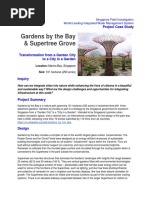 Gardens by the Bay Description Sustainability has been a key design driver for Singapores ambitious Gardens by the Bay project. The garden at Marina South will be home to some of the sites most spectacular structures including two cooled conservatories. With a total covered area of 16,500m2, they will be among the largest climate-controlled glasshouses in the world, employing low-energy and renewable systems. Each has its own distinct character, but both explore the horticulture of those environments most likely to be affected by climate change - the Mediterranean zone and tropical cloud forests. The cool-dry biome will tell the story of plants and people in the Mediterranean zone, and how the plants cultivated in these regions will gradually become endangered as temperatures rise. The adjacent cool-moist biome focuses on plants and the planet, highlighting how the warming of the cool tropical cloud forests will threaten the Earths biodiversity. The envelopes of both biomes are critical to their success. Both are designed to allow as much light as possible to enter so that the plants within can ourish; the hybrid structure of a gridshell supported by giant steel arches was informed by extensive daylight analysis. However, with high levels of sunlight comes heat gain and so to lessen the cooling load a retractable shading system will be deployed between the arches for use on sunny days. Rolled triangular sails of 8m x 10m will be concealed within the main arch sections and these will unfurl as required to provide shade. The choice of glazing is also fundamental to the faade design: the double-glazed units that enclose the biomes will have a low-e coating on the inner face of the outer pane to allow approximately 65% of the incident daylight through to the interior but only 35% of the solar heat. The cooling system for the Conservatory Complex will be carbon neutral over the course of a year. Cooled air will be supplied via displacement systems in the cool-dry biome and a combination of displacement systems and jet diffusers in the cool-moist biome. The cooled air is generally supplied at low level and, as it warms, will rise to the top of the space where it will disperse through open windows or be extracted and recirculated.