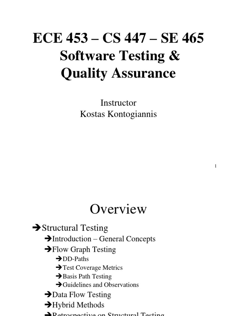 ECE 453 CS 447 SE 465 Software Testing & Quality Assurance