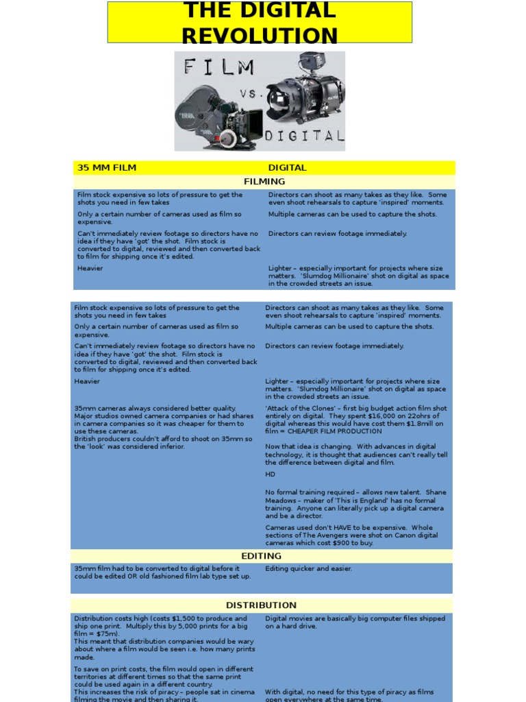 35mm film had to be converted to digital before it Editing quicker and easier.