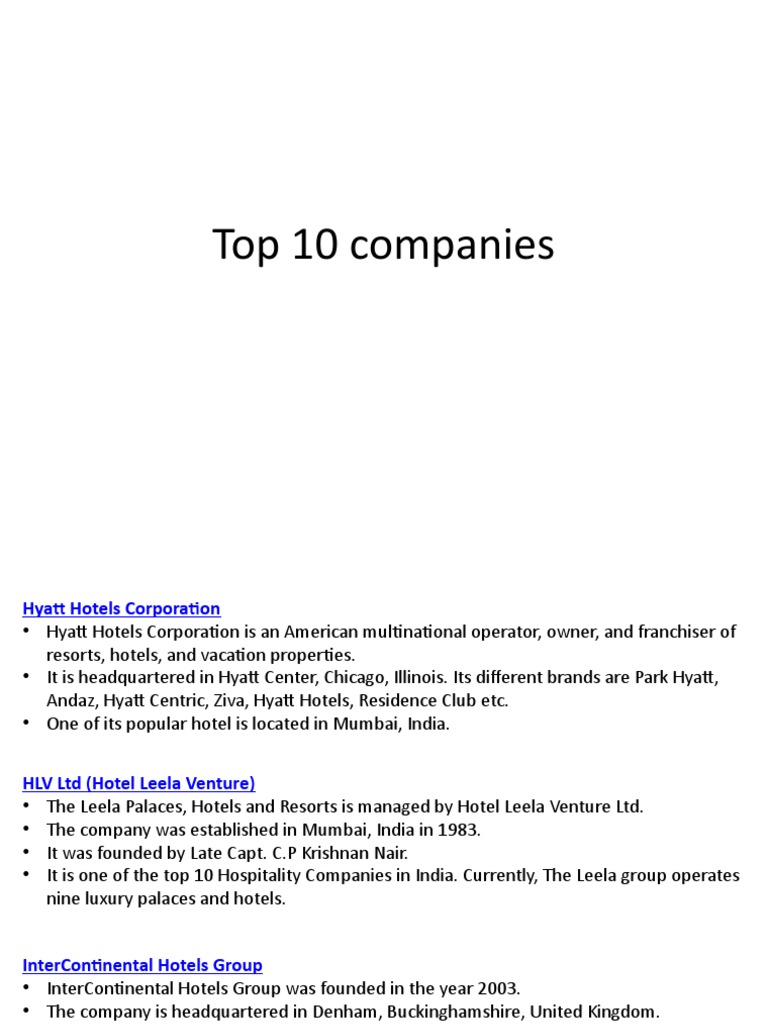 • It is one of the top hospitality companies in India. The different Marriott brands are St.