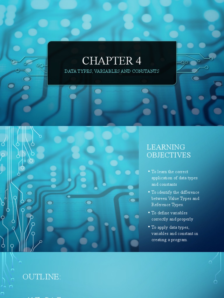 DATA TYPES, VARIABLES AND CONSTANTS