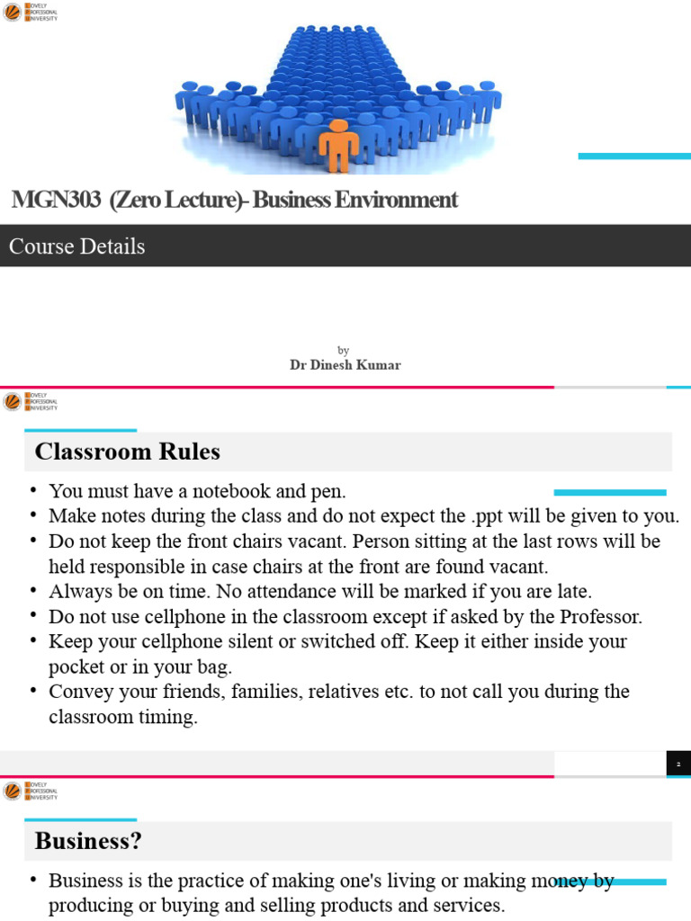• Make notes during the class and do not expect the .ppt will be given to you.