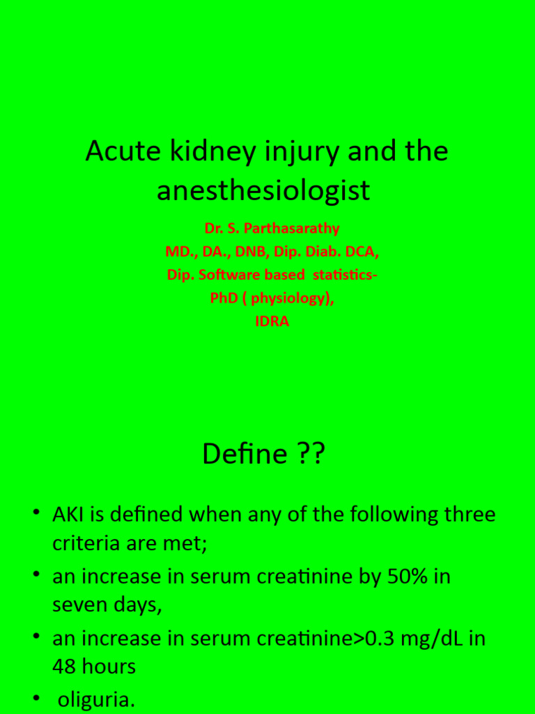 • Rise in Serum creatinine 2 time , 2.9 times or 3