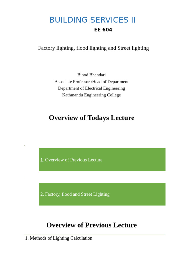 Types of lamps used: Discharge lamps, Fluorescent lamps etc