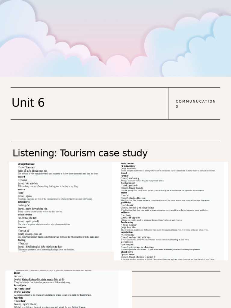 Listening: Tourism case study