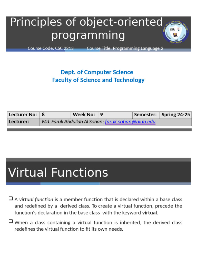 Lecturer: Md. Faruk Abdullah Al Sohan; [email protected]