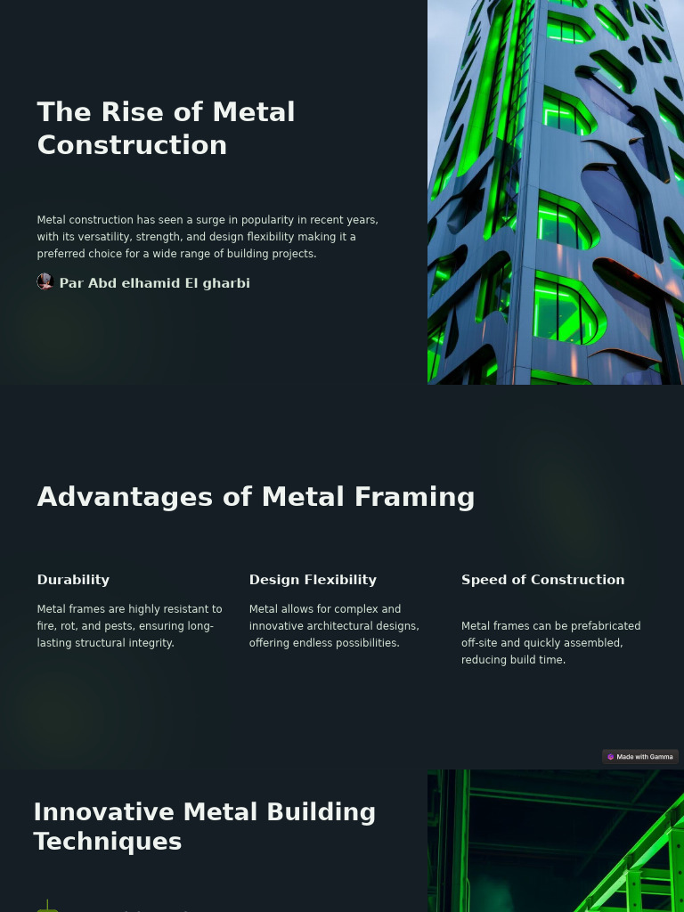 fire, rot, and pests, ensuring long- innovative architectural designs, Metal frames can be prefabricated