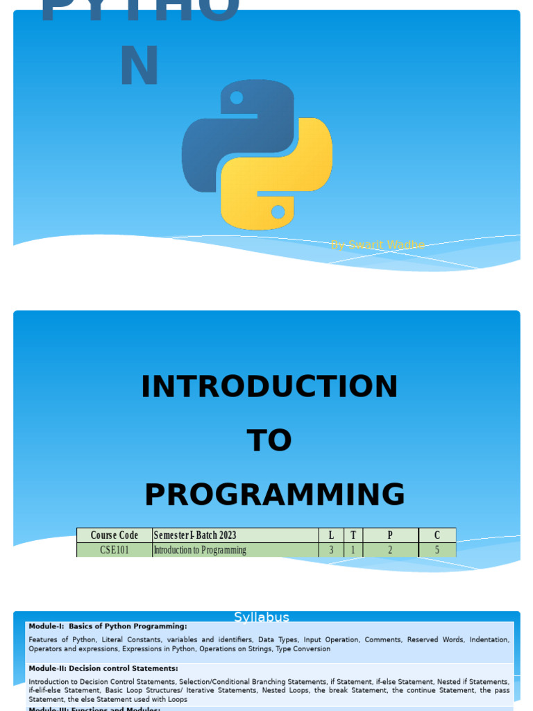 • Programming Constructs: Python offers a rich set of features such as functions,