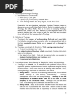 words theos, meaning “God", and -logia, meaning "utterances, sayings,