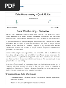 Data Warehousing Quick GuidePDFData Warehousing Quick GuideAdded by Muthumanikandan0 ratingsfunction kt(e,t){var n=e+t;return n<=0?0:Math.round(e/n*100)}% found this document usefulSave Data Warehousing Quick Guide for later