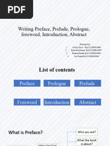 Writing Preface, Prologue, & MorePDFWriting Preface, Prologue, & MoreAdded by SNEHA AICH0 ratingsfunction jt(e,t){var n=e+t;return n<=0?0:Math.round(e/n*100)}% found this document usefulSave Writing Preface, Prologue, & More for later