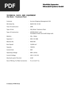 Technical Data and Equipment: Westfalia Separator Mineraloil Systems GMBH
