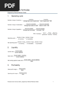 Financial Ratio Formulas: 1. Operating Cycle
