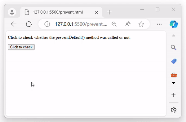 In the example below, first, we will check if the preventDefault() method has not been used to prevent the link. If it hasnât been used, we will call this method when the user clicks on the button to prevent the link from redirection −