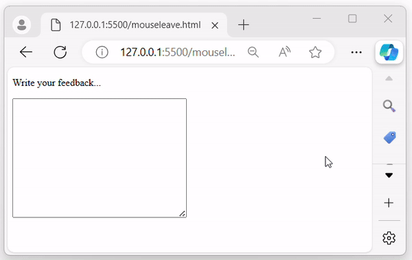 In the example below, we combine the mouseleave() and mouseenter() methods to toggle the styles of the textarea field −