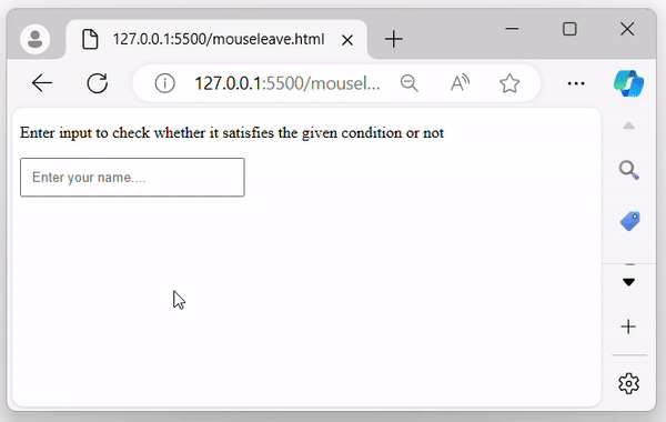 Let's see another scenario of the jQuery event mouseleave() method. Here, we are changing the input field background based on given conditions −