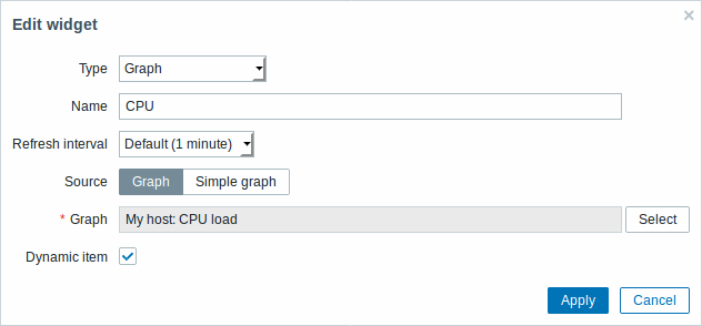 | Dynamic item | Set to display different URL content depending on the selected host. This can work if {HOST.*} macros are used in the URL. |