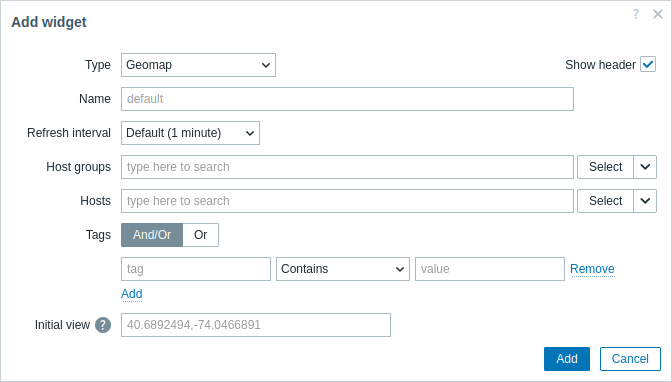 | Etiquetes | Especifiqueu etiquetes per limitar el nombre d'equips que es mostren al giny. És possible incloure i excloure etiquetes i valors d'etiquetes específics. Es poden establir diverses condicions. La concordança de noms d'etiqueta sempre distingeix entre majúscules i minúscules. Hi ha diversos operadors disponibles per a cada condició: Existeix - inclou els noms d'etiquetes especificats Igual - inclou els noms d'etiquetes especificats i valors (distingeix entre majúscules i minúscules) Conté - inclou els noms d'etiquetes especificats on els valors de l'etiqueta contenen la cadena introduïda (coincidència de subcadenes, no distingeix entre majúscules i minúscules) No existeix - exclou l'especificat noms d'etiquetes No és igual - exclou els noms i valors d'etiquetes especificats (distingeix entre majúscules i minúscules) No conté - exclou els noms d'etiquetes especificats on els valors de l'etiqueta continguin la cadena introduïda (coincidència de subcadenes, no distingeix entre majúscules i minúscules). Hi ha dos tipus de càlcul per a les condicions: I/O - s'han de complir totes les condicions, les condicions que tinguin el mateix nom d'etiqueta s'agruparan per la condició O O - n'hi ha prou si es compleix una condició. Aquest paràmetre no és pas disponible quan configurem el giny a un tauler de plantilles. |