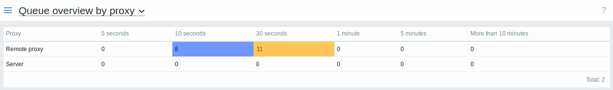 La cua només és disponible si el servidor Zabbix s'està executant. Els elements no es compten a la cua si la interfície d'elements no és disponible a causa de problemes de connexió o l'agent no funciona correctament.